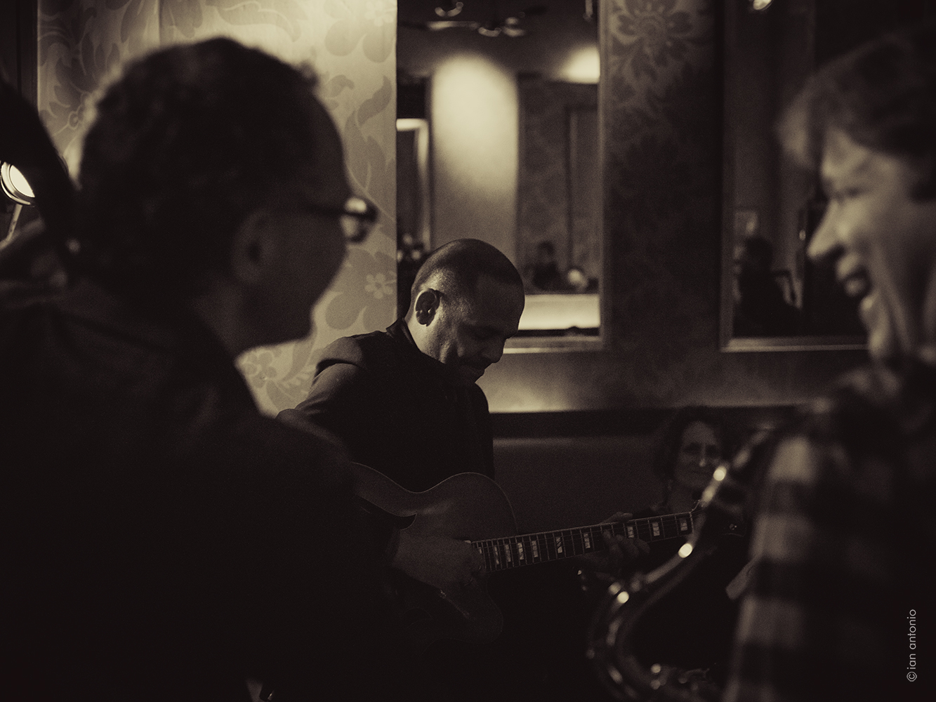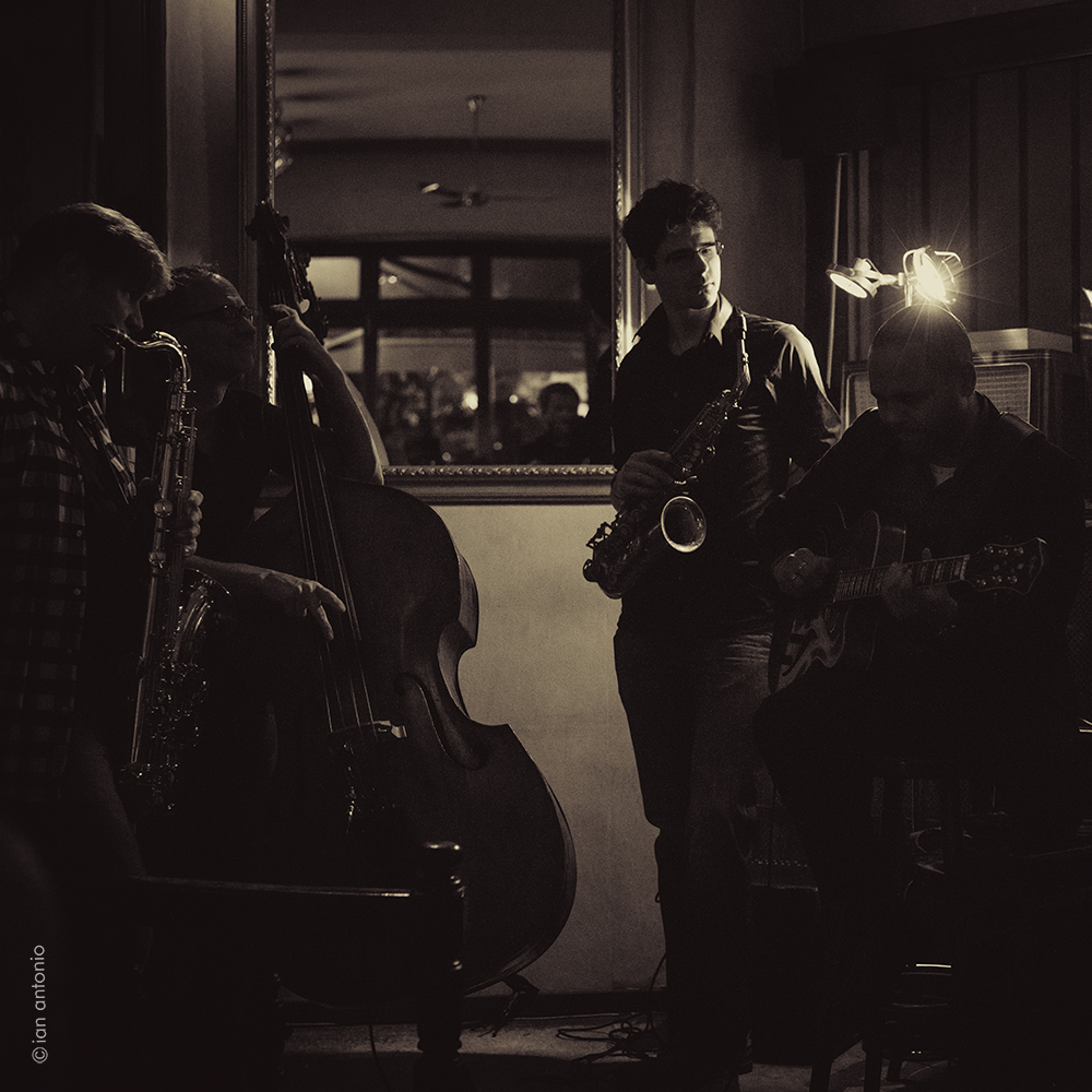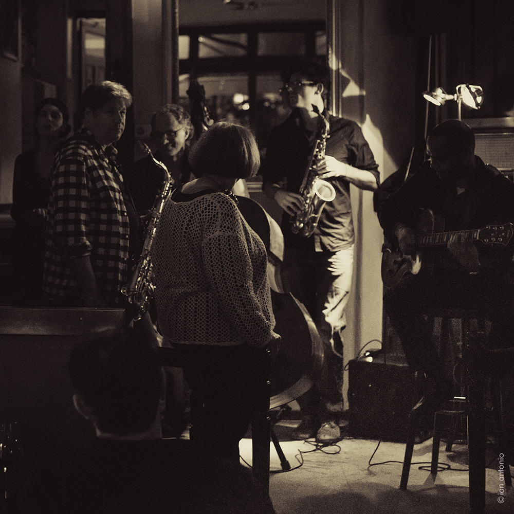 There’s not much more to it, the jam is jazzy and I’m royal blue. At least I got a spot close to the music. Oh joy silver traps in the house tonight, two saxes a vibraphone and a base – and look the congas in cream just walked in. 20-3-16.